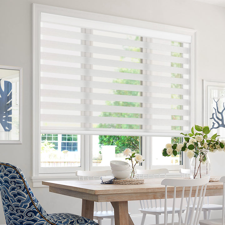 Experience the seamless blend of privacy and natural light adjustment with our zebra blinds. Effortlessly tailor your space to suit any mood or occasion with just a gentle touch.